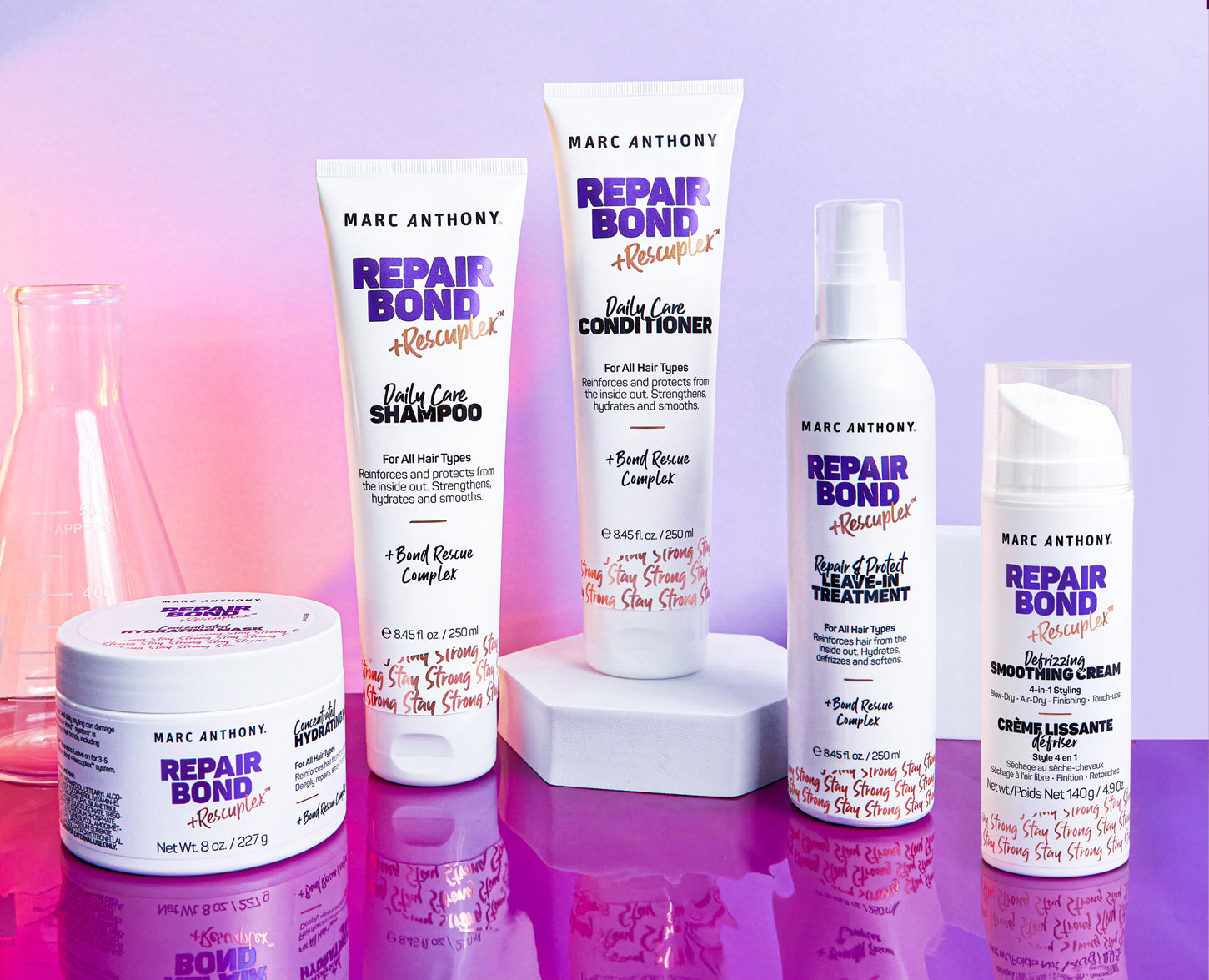 Meet the Next Generation in hair Repair. The New Repair Bond +Rescuplex™ system reinforces hair’s damaged disulfide bonds from the inside out while protecting hair from future damage. The revolutionary system of products is clinically proven to make hair feel up to 111% Stronger, 140% Smoother and 129% Shinier. It’s salon quality repair at a fraction of the price of expensive salon treatments.